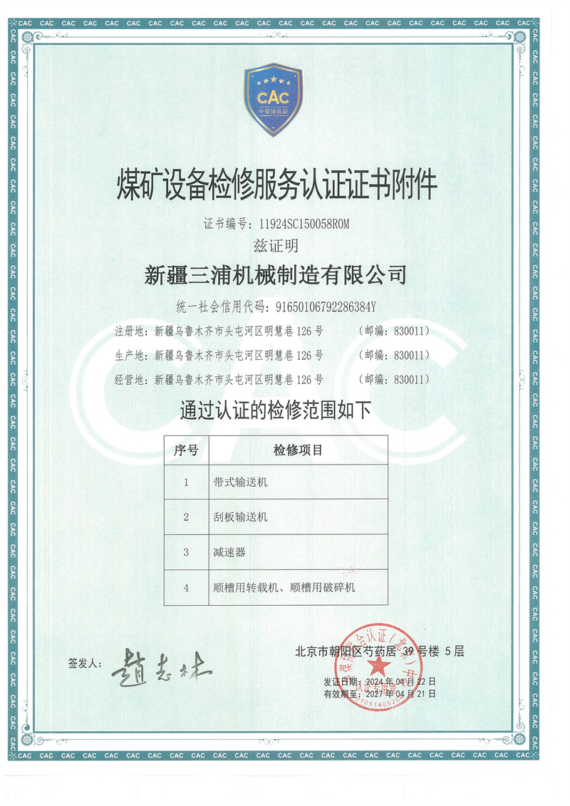 矿用设备检修证书