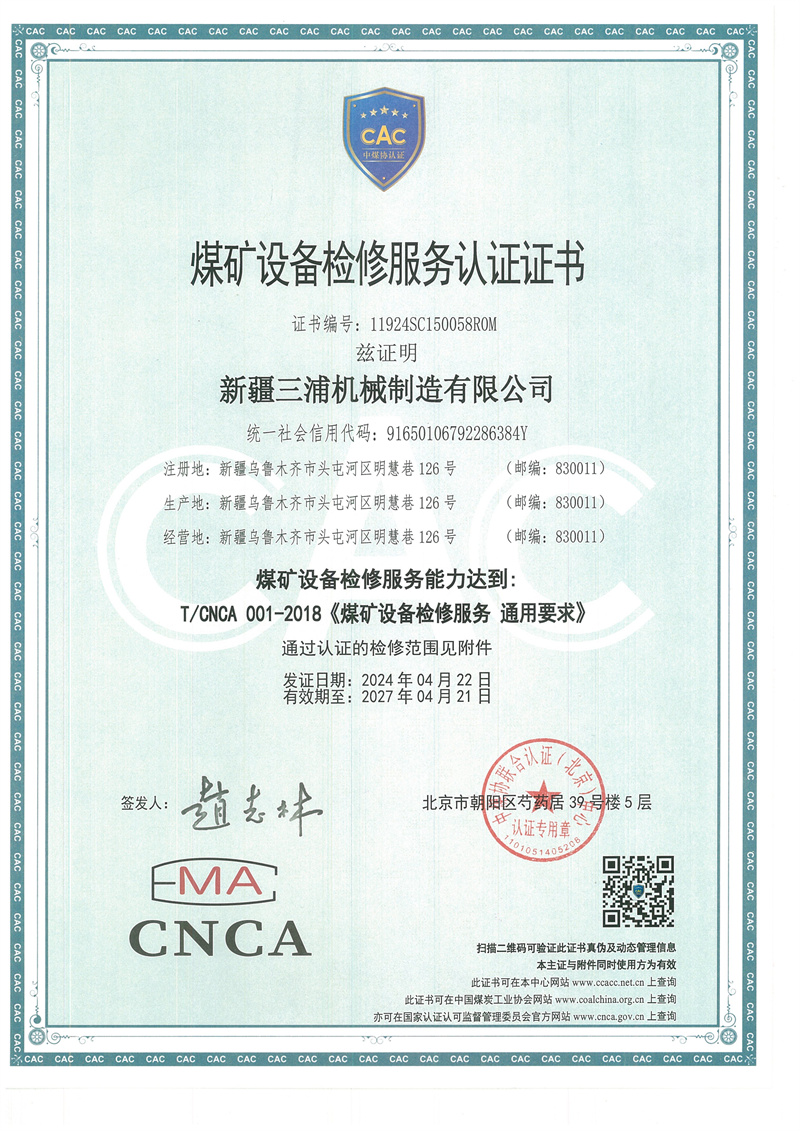 矿用设备检修证书