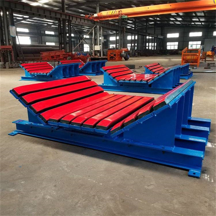 重型缓冲床,与皮带面与面接触,受力均匀,避免皮带因波浪形受力而导致的物料飞溅,增强皮带裙边密封性,并大大降低皮带被尖锐无聊穿透而导致纵向撕裂的概率,聚乙烯表面摩擦系数小、减少对皮带磨损,耐磨性好;高弹性特种橡胶,有效吸收物料下落冲击力;独特配方和生产工艺确保缓冲滑条表层和橡胶高强度粘接牢固可靠;缓冲滑条接触面两端成弧形,有效保证输送带平滑运行,支架钢构强度可靠,表面处理采用静电喷涂工艺,避免锈蚀;钢构选型更具工矿条件选用工字型型材、H型型材及钢板钢构避免物料冲击造成支架弯曲变形,专用T型放松固定螺栓,确保缓冲条在运行中不松动,安装简单、维护方便、经久耐用。